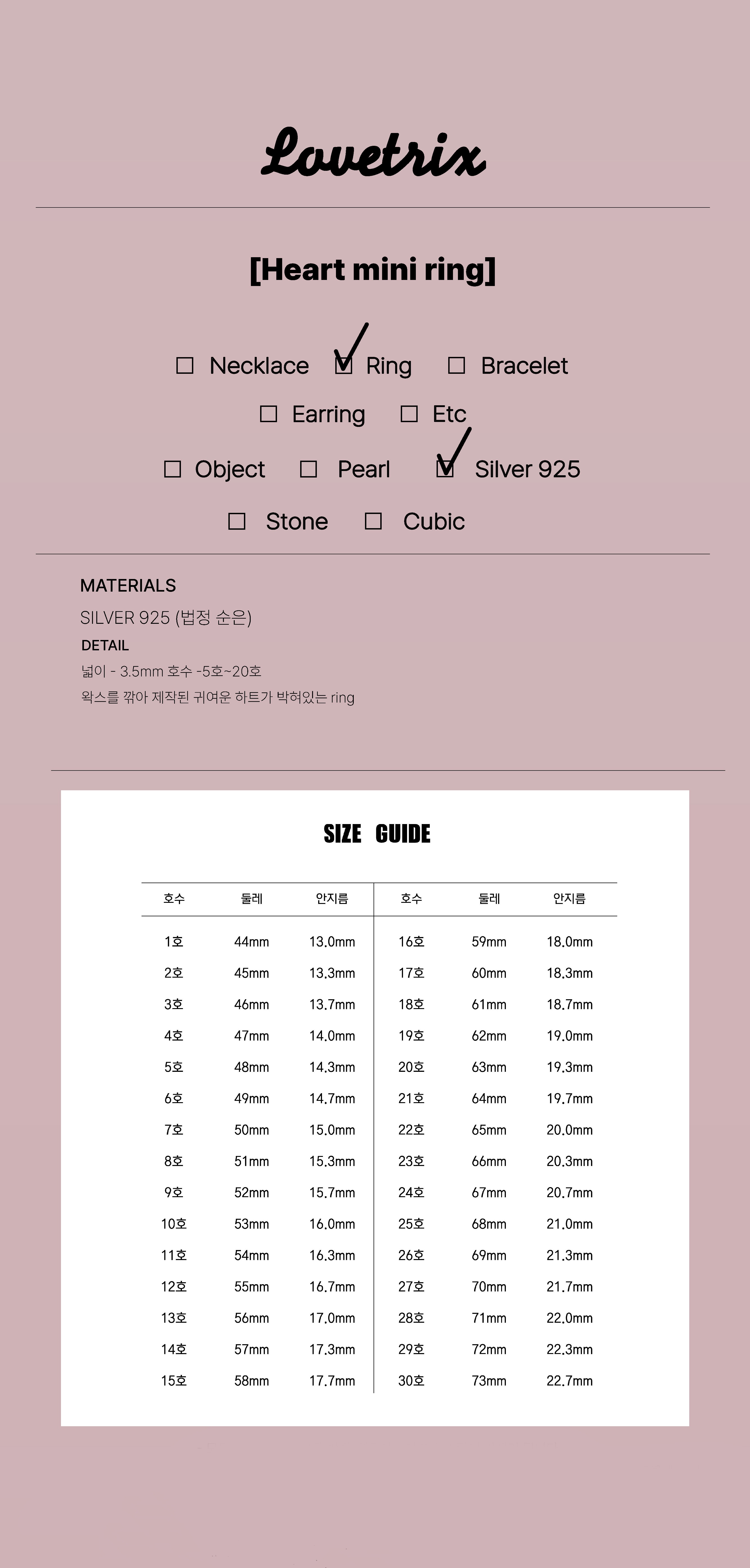 size : 넓이 3.5mm / 매장(11-12호) / 주문제작 (1호-21호)
