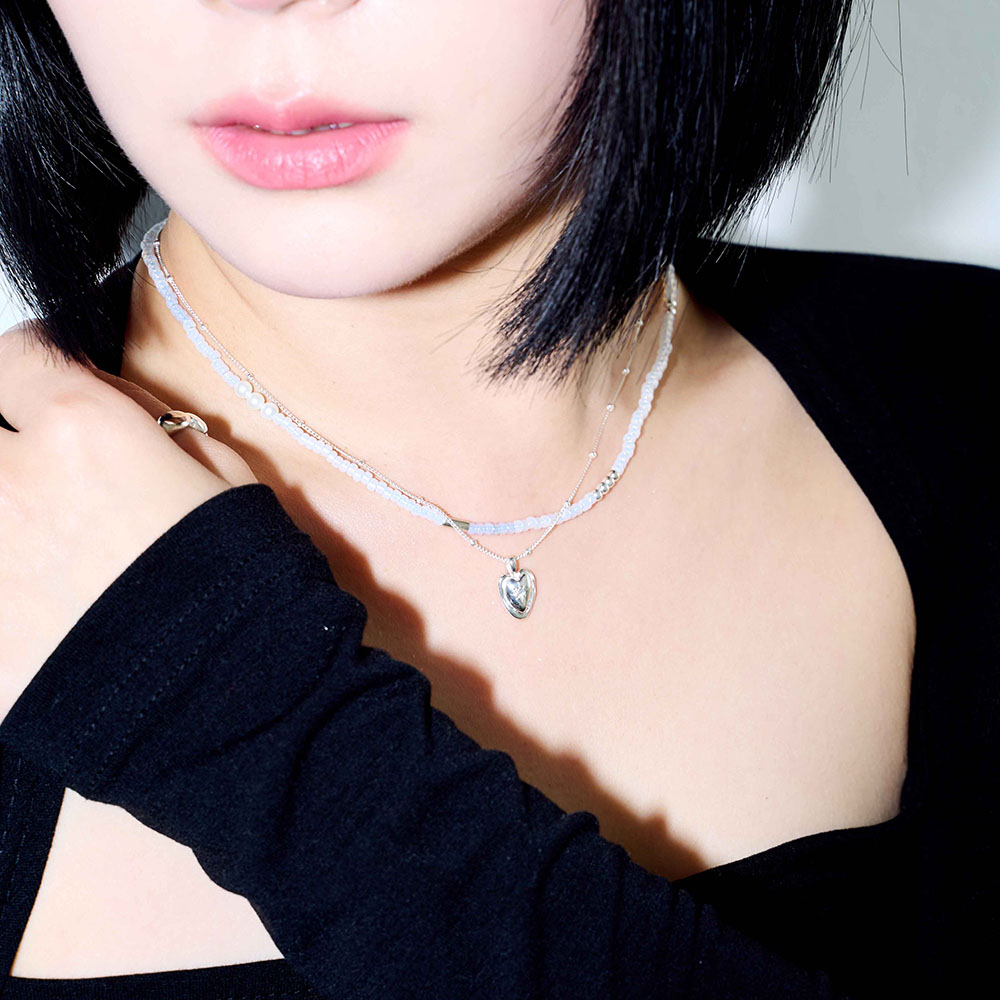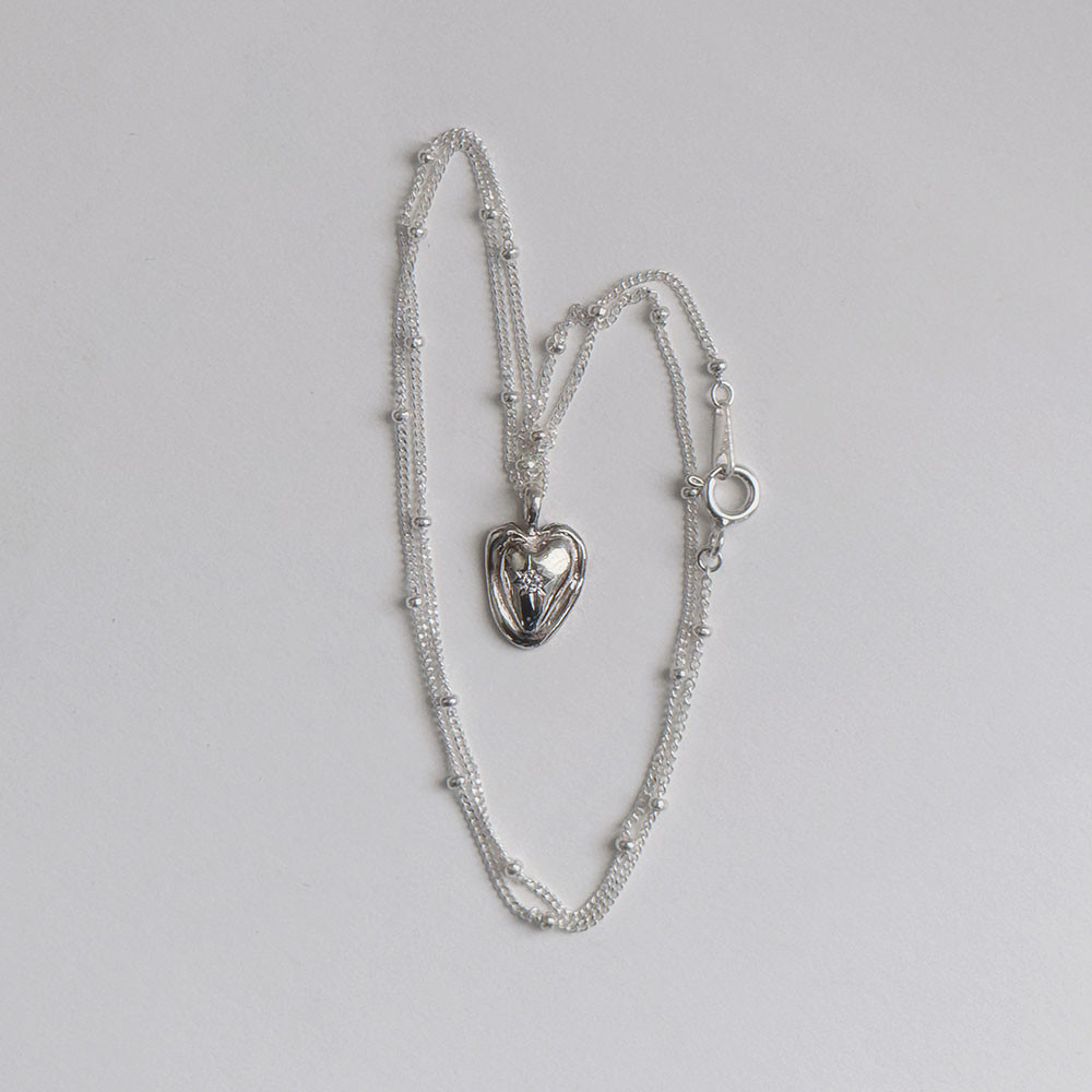 "하트 비정형 펜던트에 별조각이 새겨진 목걸이 입니다.