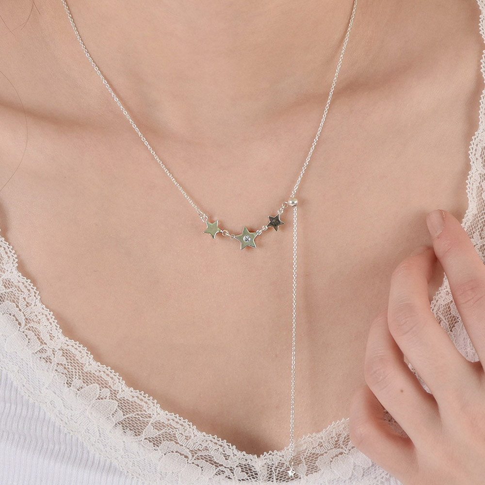 *50cm + 5cm 로 롱 네크리스로 3개 별이 포인트 주기 좋은 목걸이 입니다.