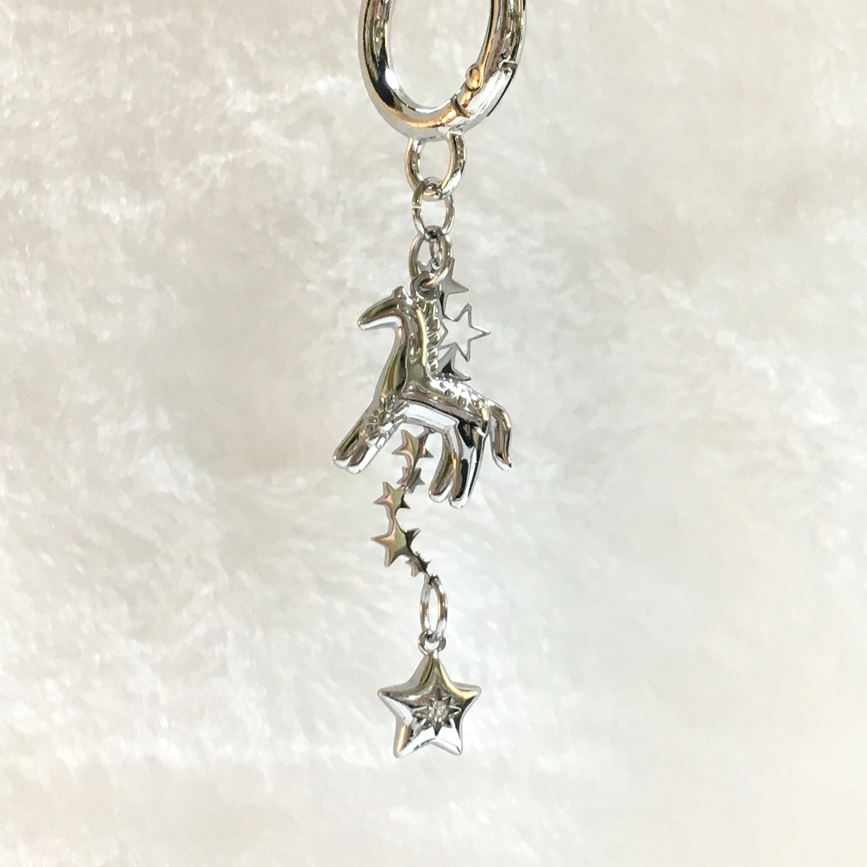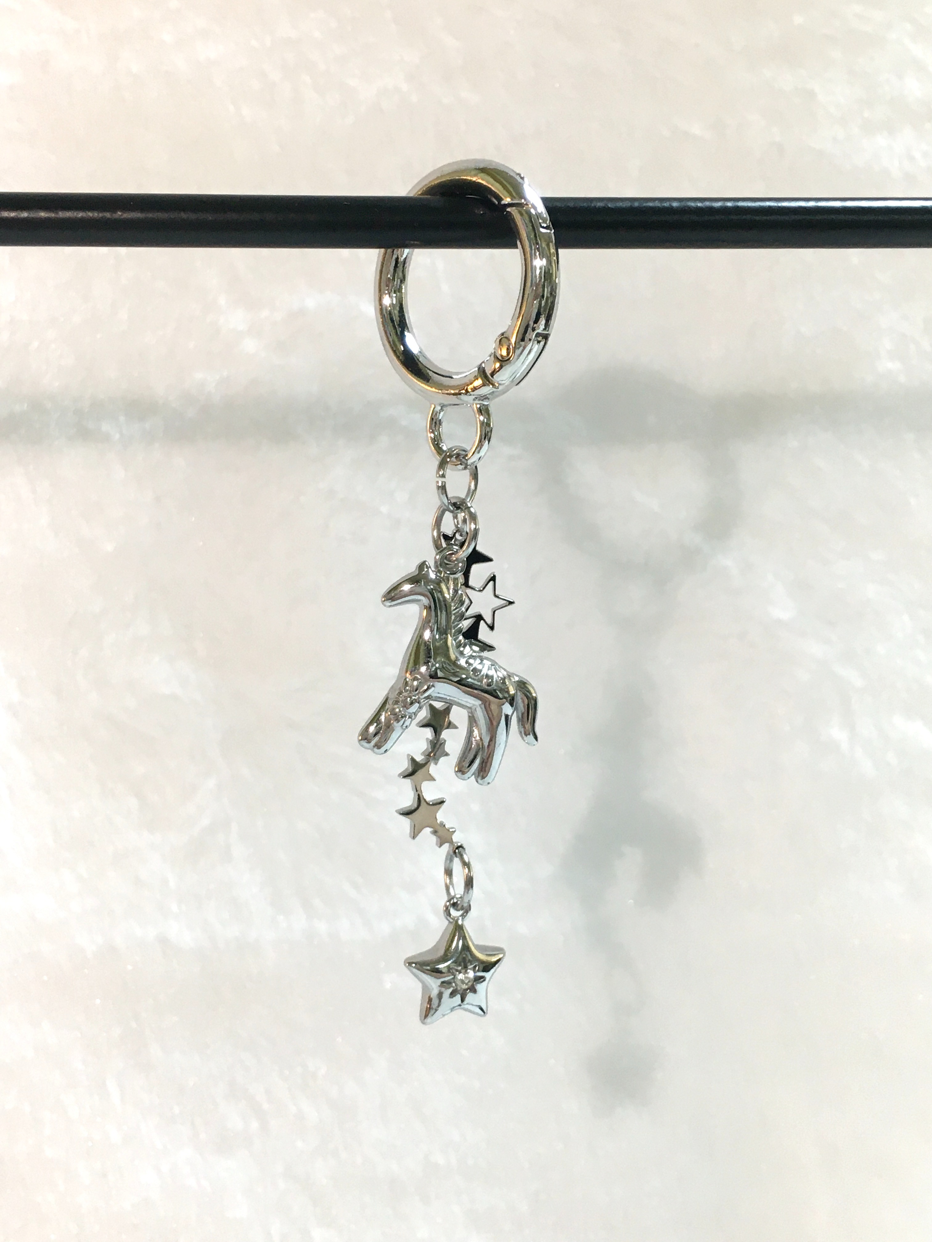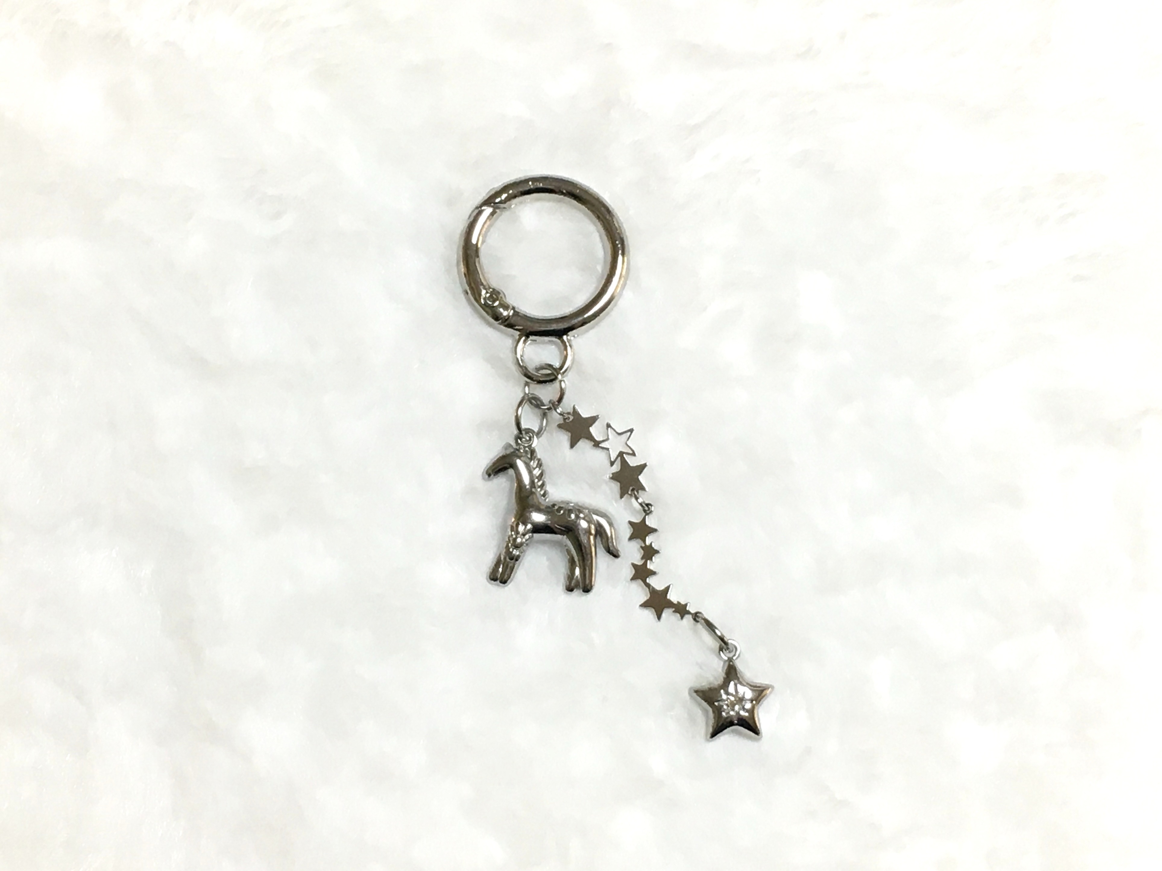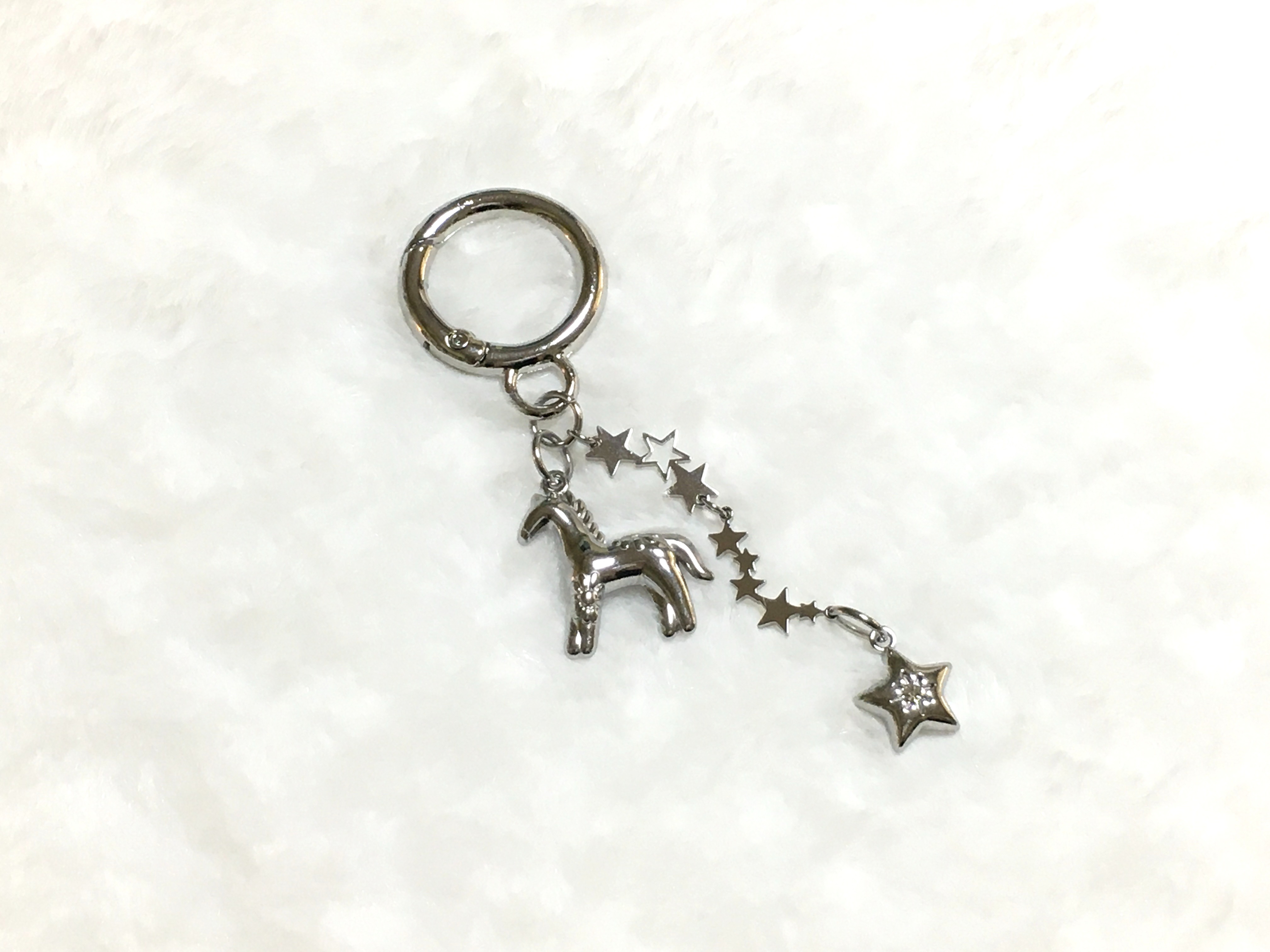 빛을 받으면 은은하게 반짝이는 실버 톤의 말 키링으로