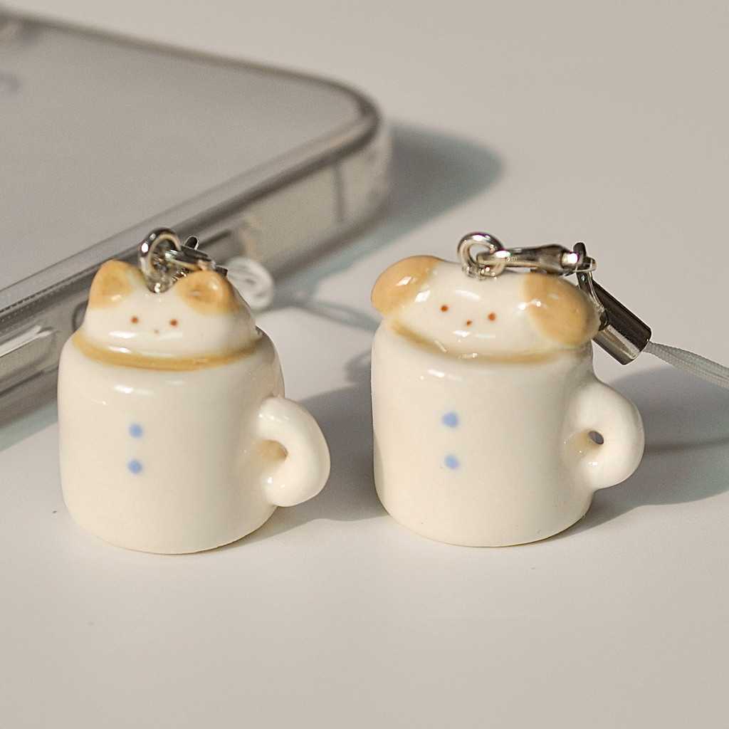 "고양이 강아지 우유 크림이 올라간 카푸치노 키링입니다.
